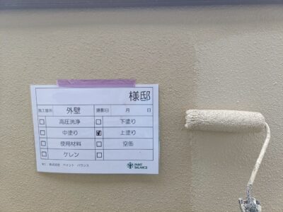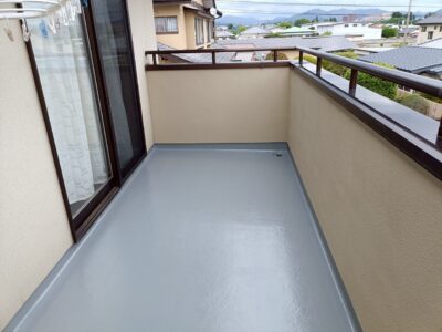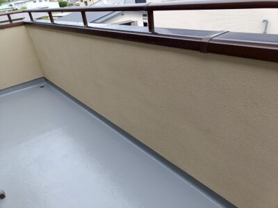 外壁の部分塗装とFRPトップコートの施工が完了しました。